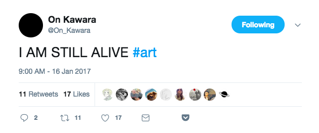 For the past four thousand–odd days, @On_Kawara has issued the same digital proclamation: “I AM STILL ALIVE.” Appended to this message is the statement #art. When you click on that #art, Twitter will deliver every statement so designated, and you see how broad a definition art really has.