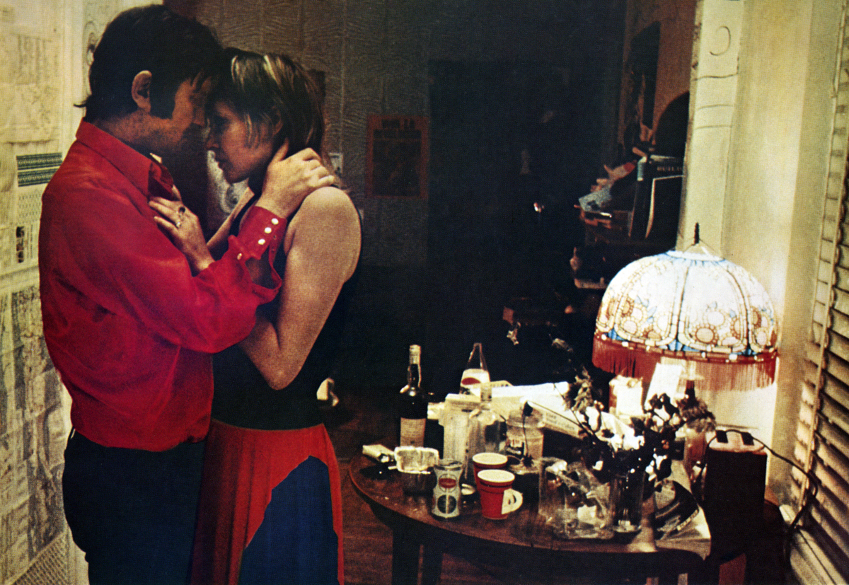 Vivre ensemble was not critically embraced. In her Cannes dispatch for the Village Voice, Molly Haskell wrote, “The film wallows in a Relationship in that oppressive way that is a woman’s sensibility at its worst.” While I don’t entirely disagree with that assessment, especially as it applies to the movie’s desultory final third, I find it much more rewarding to think of Karina’s directorial debut as a kind of gender inverse of another film that premiered at Cannes in ’73: Jean Eustache’s The Mother and the Whore. Like Vivre ensemble, that movie also stars a Nouvelle Vague icon, Jean-Pierre Léaud, as Alexandre, a Parisian dandy (and a clear stand-in for Eustache) in a tumultuous open relationship with a slightly older woman who financially supports him and a nurse devoted to libertinism. Both films showcase attic apartments as key settings, with a particular focus on what happens in and out of the beds that dominate each flat.