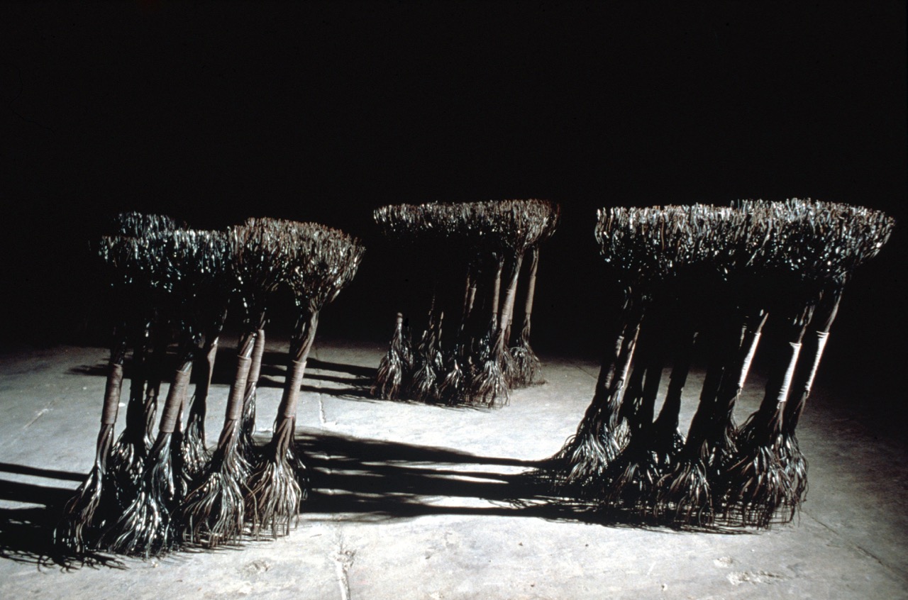 Maren Hassinger, Leaning, 1980. Wire rope, wire, 33 units: 16 × 12 × 9 inches. Image courtesy the artist.