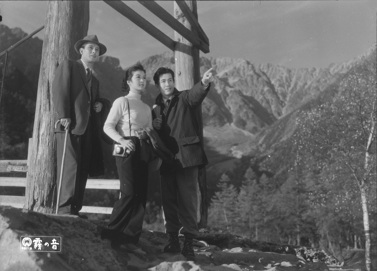 Ken Uehara as Kazuhiko Onuma, Yoshiko Fujita as Yuko, and Michiyo Kogure as Tsuruko in Sound in the Mist. © KADOKAWA.