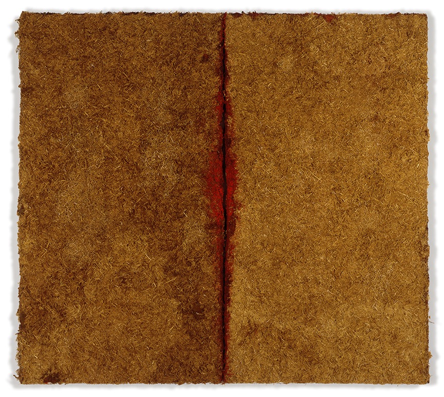 Harmony Hammond, Untitled, 1995. Straw, acrylic, oil on canvas, 74 × 82 inches. Image courtesy the artist and Alexander Gray Associates. © 2018 Harmony Hammond / Licensed by VAGA at Artists Rights Society. Photo: Herbert Lotz.