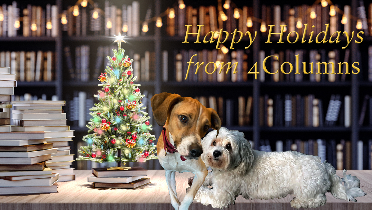 4Columns assistant managing editor Bolek and mascot Sparky are snuggling up over the holiday break with a very special pile of reading to do: our top-ten reviews of 2021!