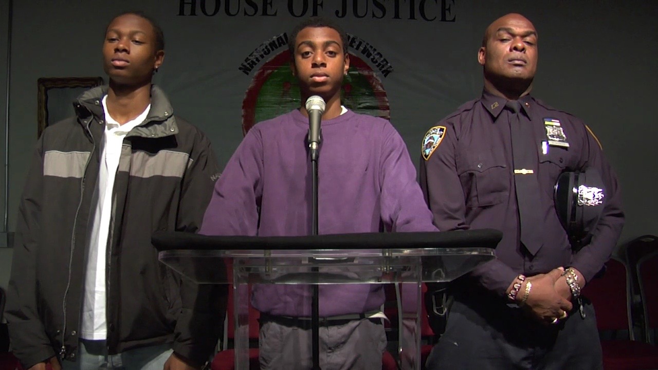Nari Ward, Father and Sons, 2010 (still). Digital video projection, sound, color; 3:52 minutes. Filmed by Scott Sinkler. Image courtesy the artist, Lehmann Maupin, and Galleria Continua.