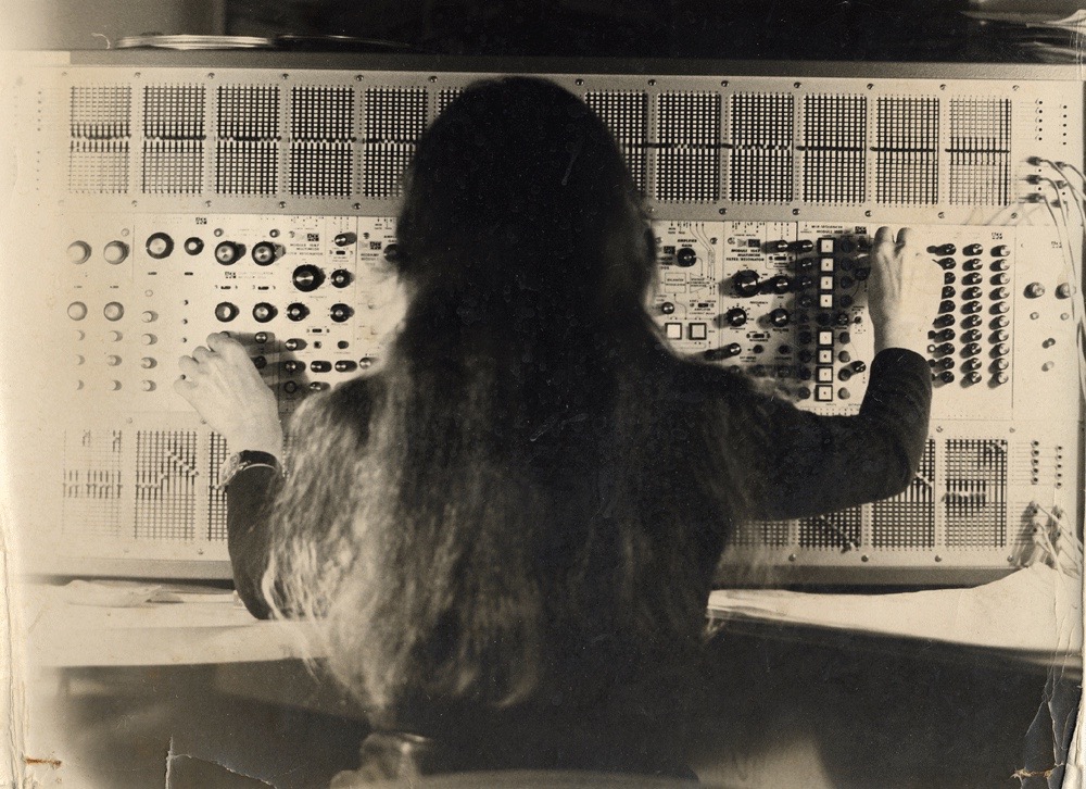 Éliane Radigue in her studio, Paris, ca. 1970s. Photo: Yves Arman.