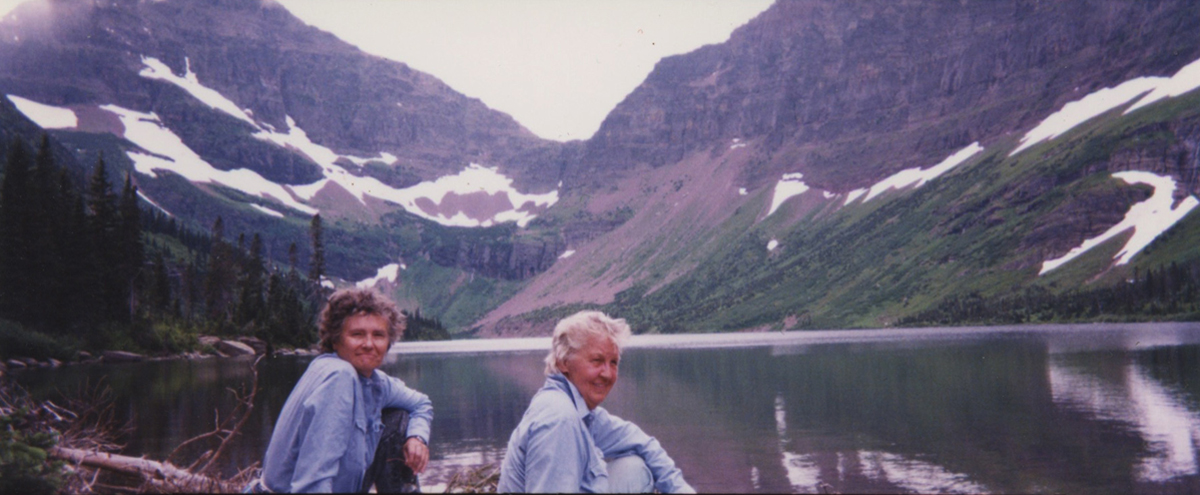 Annea Lockwood and Ruth Anderson in Glacier National Park, MT, 1990s. Courtesy Annea Lockwood.