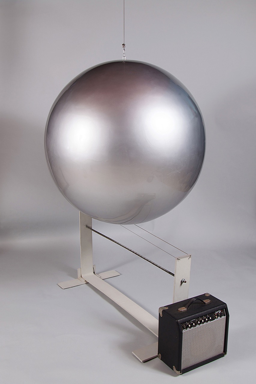 Takis, Musical Sphere, 1985. Aluminum, iron, metal string, metal wire, paint, polyester, 63 × 39.4 × 44.9 inches. © ADAGP and DACS, 2019. Photo: Hlias Nak.