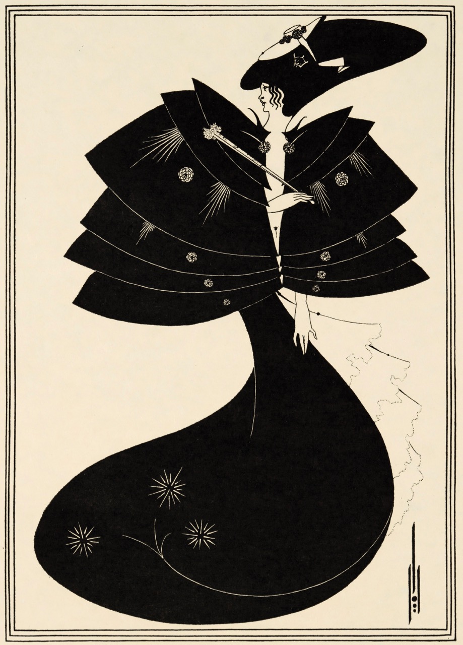 Aubrey Beardsley, The Black Cape, 1893. Line block print on paper, 9 × 6.42 inches. Photo: © Tate.