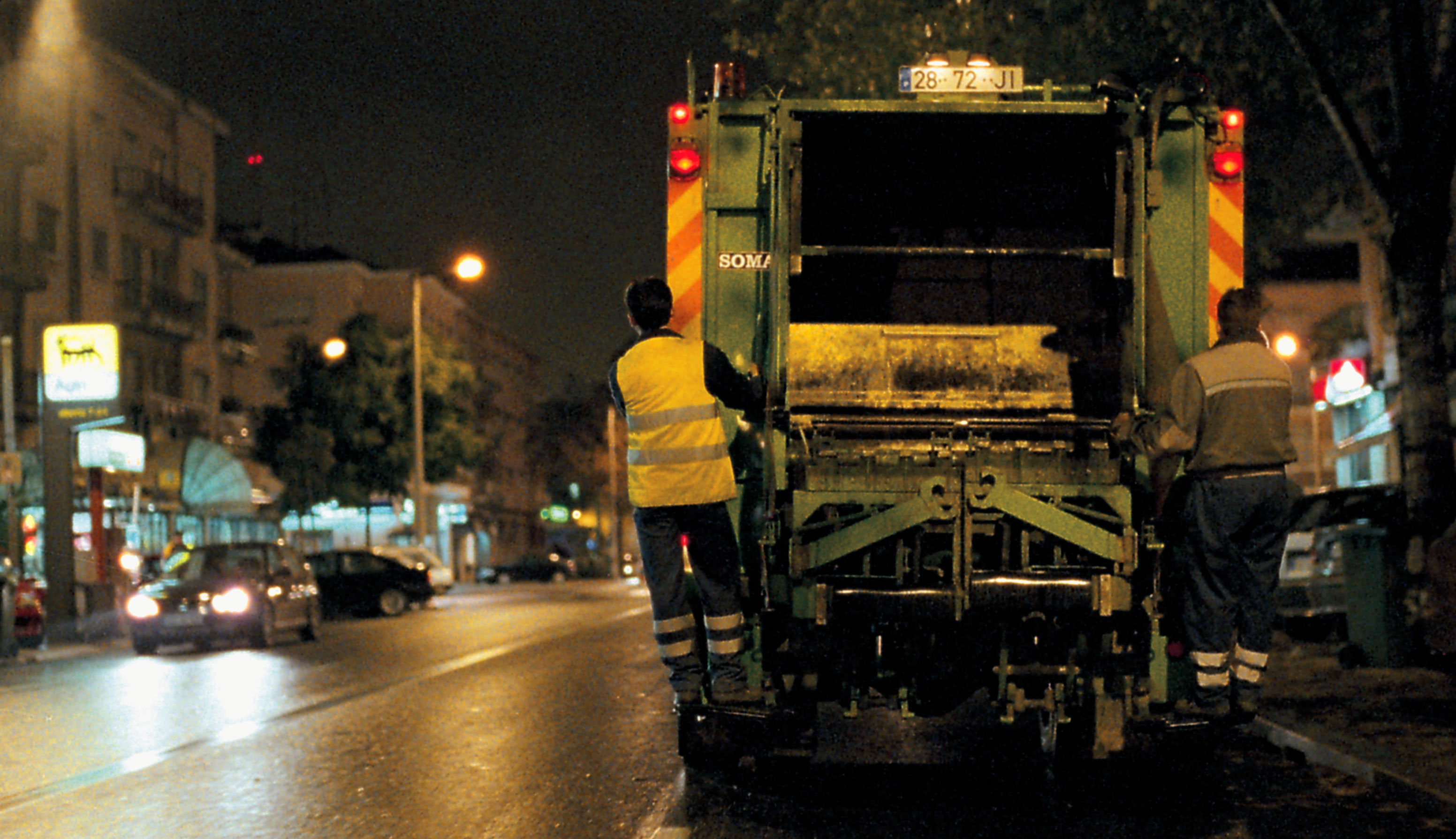 The shock and awe of having a human body in an animal world is a central preoccupation for Rodrigues, who studied biology before switching to film at Lisbon’s Escola Superior de Teatro e Cinema under the tutelage of the still relatively unknown Portuguese poet and documentary filmmaker António Reis. Rodrigues’s most recent release, The Ornithologist (2016), also has at its center the allusive field of vision of a solitary male character, a birdwatcher named Fernando (Paul Hamy), who undergoes a wayward, religious odyssey in the forest of northern Portugal, the region most associated with Reis. Yet the lush, sun-dappled landscapes of The Ornithologist are a visual inversion of the mise-en-scène of O Fantasma, a sordid city-symphony, with elements of science fiction, about wanting to become garbage. Shot mainly at night, under streetlamps where available, and with nonprofessional actors, O Fantasma abounds in blurs and shadows that muddle the physical boundaries of sentient beings. Prior to shooting, Rodrigues spent six months with the employees of a waste-management site in northern Lisbon, familiarizing himself with their day-to-day operations and the routines of the city’s working class, themselves regarded by the capital’s policymakers as refuse.