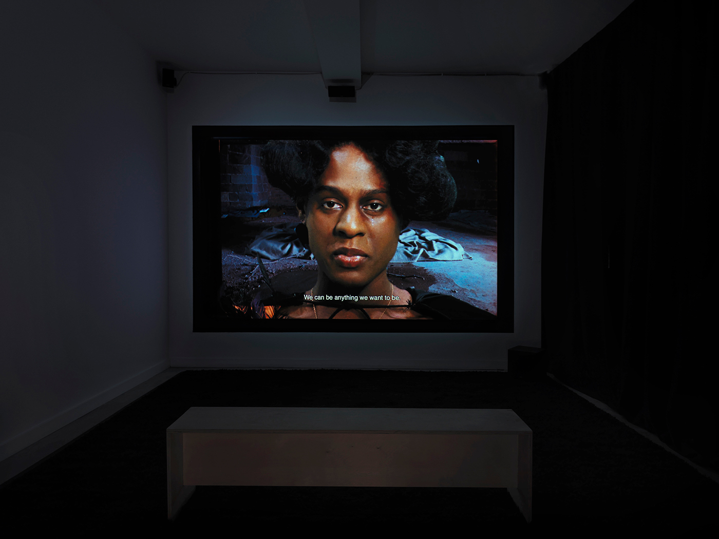 Off the cavernous screening room for Salacia are five plein-air color photographs, all self-portraits. In a way, through her photographs Tourmaline is unpacking the storying of Salacia, drawing on Victorian-era pornography and turning it inside out. But where Salacia slowly forecasts disaster, the photographs of Pleasure Garden, taken together, emote possibility, construct a horizon of the limitlessness, disrupt received narratives about what black trans women are expected to endure. There are entire academic and artistic disciplines about how blackness and gender are co-constitutive (or co-disruptive). Salacia is in conversation with this rich dialogue about how blackness undermines normative articulations of gender: it leads us, for instance, to consider how Hortense Spillers’s 1987 idea of the “ungendered” captive slave might apply to the trans subject.