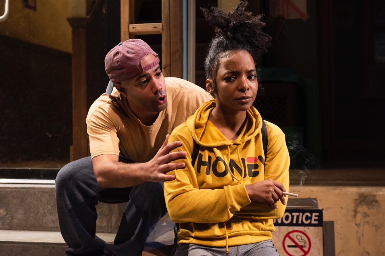 In his previous work Guirgis has never shied away from the grim or depressing aspects of his characters’ lives—in fact he often underlines extreme thoughts and deeds induced by deprivation. But his earlier plays emphasized the power of speech (especially humorous wordplay) to create dignity—holding out the possibility that rugged individualism could prevail even in a rigged system. Halfway Bitches takes a starker view, maybe because the playwright turns to mostly female protagonists with far less power in their world. Yes, Guirgis’s trademark rapid-fire hurling of elaborate insults amuses, as it always does. (Venus’s riposte to her harassers is typical: “Yo Mobo—don’t call Bellevue, call Wringling Brothers—put these two circus bitches in the Clown Car sweeping Elephant poo.”) But there are fewer such scenes than in Motherfucker, and moments of verbal self-possession quickly recede, though the two teenagers, Mateo (Sean Carvajal) and Little Melba Diaz (Kara Young), both aspire to poetry and art. (The title comes from Little Melba’s spoken-word ode to the home.) Wanda even cautions Mateo to write instead of expressing emotion in public: “Put it on the paper. Rage. Love. Pettiness. Kindness. . . . That’s the safe place to have your feelings—not here.”
