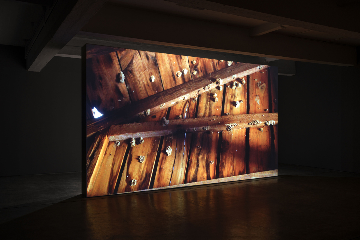 The exhibition’s sparse and minimal staging makes sense; it would have to be this way, as the photos and videos themselves are so weighted, multilayered, multifaceted, and overpopulated with memories. There is intended and allowed space for the colossal waves of feeling, thought, and reflection. Those smaller-scaled images play against From Out of Space (2018–21), a large and massive video of drone and aerial footage of the shop, the barn, and river where Emmett Till, a fourteen-year-old African American boy, was brutally murdered in 1955 by white men after being falsely accused of whistling at a white woman outside a general store. His disfigured body was dumped into the Tallahatchie, where he was later found. This event galvanized the civil rights movement. The minimal scale of the photographs offset and underscore the monumental events and violence that took place.
