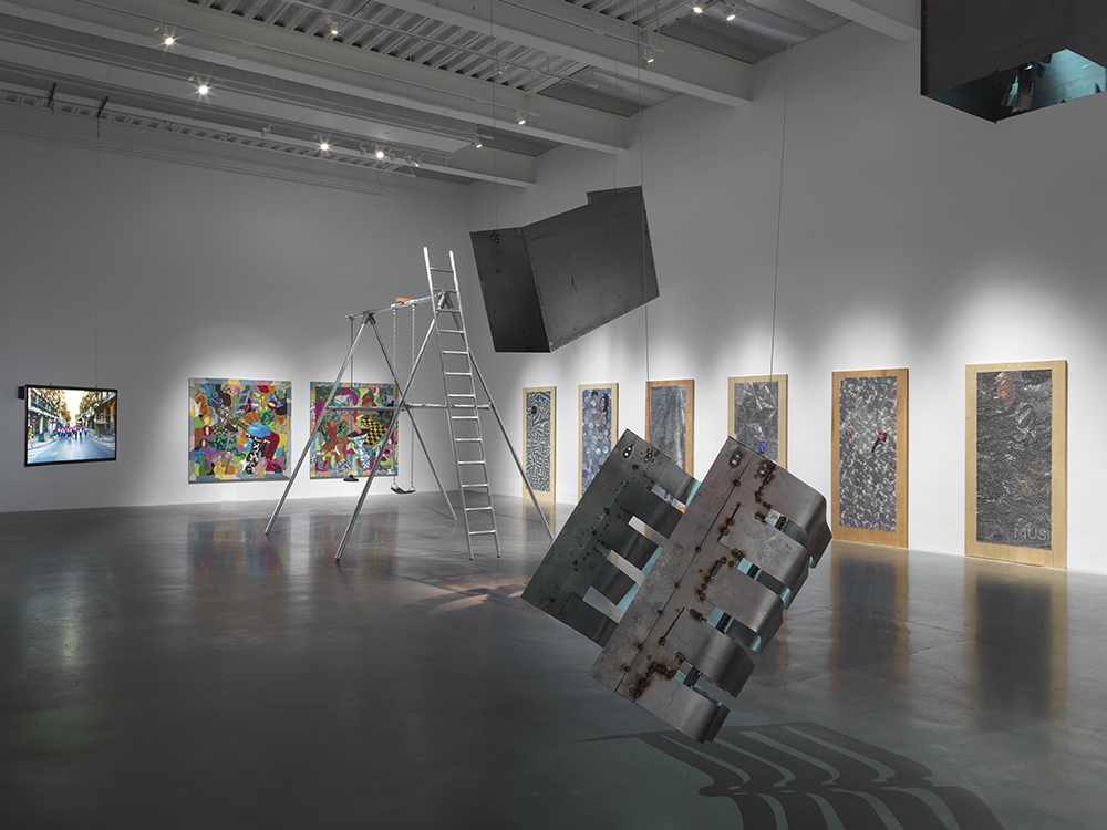 While those videos are some of the strongest pieces in the show, this iteration of the triennial is actually relatively light on new media—that might be a conscious choice on the part of the curators, or could be indicative of a return to painting and physical objects in the post-’80s generation of artists. Of the painters, Haitian Tomm El-Saieh is the standout here. Three large canvases (all 2017–18) offer bright, frenzied abstractions, heavily layered with washes of color and crowded with obsessive markings, requiring close and careful looking. Accompanying texts make much of El-Saieh’s multicultural background (his father is Haitian-Palestinian, his mother Israeli) and his grappling with the cultural legacy of his native Port-au-Prince, but as with dusk and dawn, knowing the backstory is unnecessary. The paintings are mystical and transportive, nervous and trippy—hypnotically unfurling the longer you gaze at them.