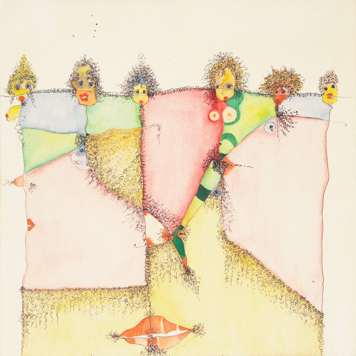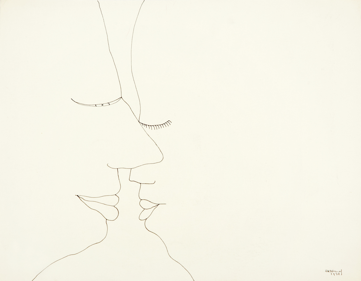 Huguette Caland, Bouches (Mouths), 1972. Ink on paper, 10 1/2 × 13 3/4 inches. Courtesy the Drawing Center.