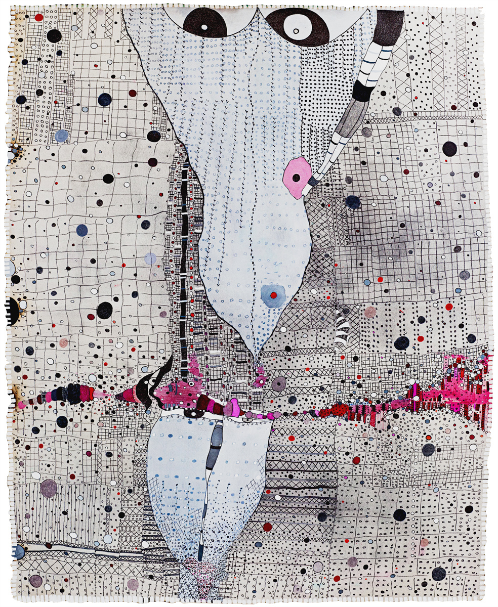 Huguette Caland, Rossinante Under Cover XII, 2011. Mixed media on canvas, 52 × 41 inches. Courtesy the Drawing Center.